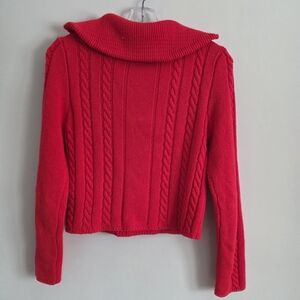 ZARA | RED CABLE KNIT JUMPER Half Zip Sweater HIGH NECK SIZE M