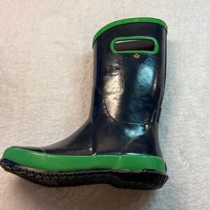 Bogs “Krainboot Solid” waterproof rain boots pull-on in navy/bright green. Rubber sole. New, never worn. Great for playing outdoors in the Springtime, hiking, Easter egg hunts!