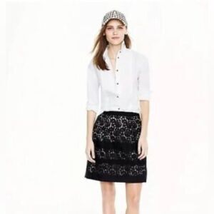 Gorgeous j crew black floral lace contrast striped skirt. Never been worn, with tags attached. Cotton/nylon blend. Lined. Back zip.