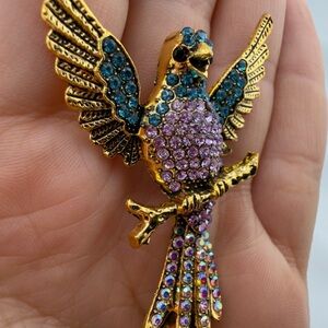 Vintage unique Gold and Multicolor Bird Brooch