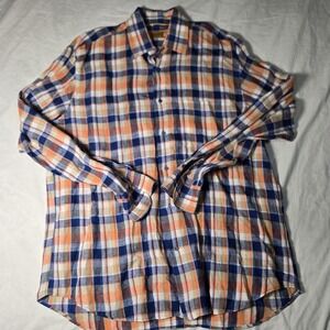 Robert Talbott Carmel Shirt Long Sleeve Button Up 100% Linen Large Plaid