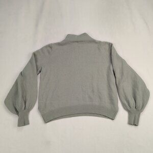 Ted Baker 100% cashmere mock turtleneck sweater in a soft light gray. Juniors size 1 with a slightly boxy, cropped silhouette, mock/funnel neck, and subtle balloon sleeves with ribbed cuffs and hem. Luxurious, lightweight cashmere great for layering or elevating casual looks.