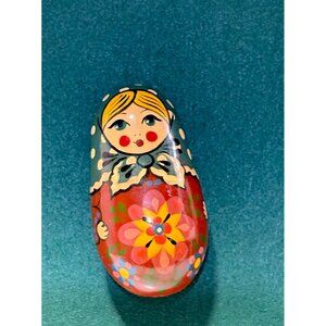 Matryoshka Russian Nesting Doll Brooch Pin ~Hand Painted Wood 1 .5 H ~Vintage