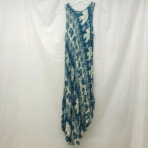 Maxi Sundress Turquoise Elephant Print Boho Forest Fairy Scoop Neck Lightweight