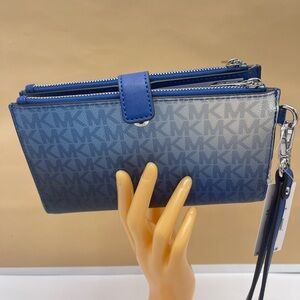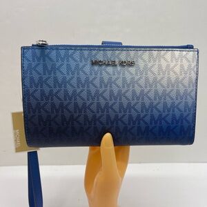 MICHAEL KORS Jet Set Large Ombré Signature Logo Double Zip Wristlet Phone Holder Wallet