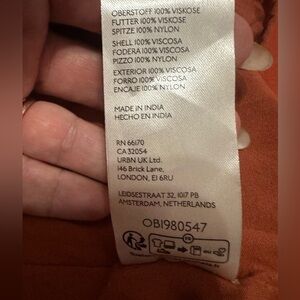 This elegant rust dress features delicate lace trim, perfect for any occasion. The flowing design offers both comfort and style.