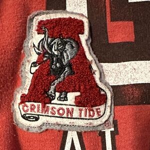 Cozy red hoodie with 'Go Alabama' print. Perfect for fans.~15.5” underarm to underarm. ~21” length. Bottom band is ~13.5” without stretch. Purchased between 2005 and 2010. Preowned condition-see photos. Some light discoloration on sleeve cuff end. Original drawstring intact place. Zipper is functional. The lettering was distressed style at purchase, some addition distressing and cracking has occurred with normal wear and wash. No longer fits so looking for a new home. The color is definitely more pink than red- is is showing up in the photo more red than actual shade.