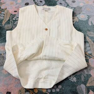 Casual Corner Vintage Vest Womens White Pinstripe Work Button Up Sleeveless Sz 6 blouse top