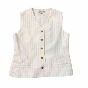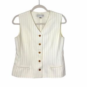 Casual Corner Vintage Vest Womens White Pinstripe Work Button Up Sleeveless Sz 6