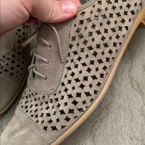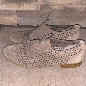 franco sarto taupe perforated lace up Oxford shoes, great condition only worn twice! Just some Little scuffs on top of one shoe see photos:)