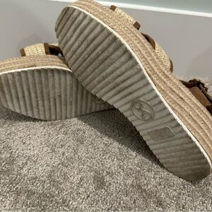 Step out in style with these chic brown and cream wedge sandals from Sam & Libby. Perfect for any occasion, these sandals offer both comfort and elegance. Available in a size 10. Gently worn and in excellent condition. Smoke free, kitty friendly home.