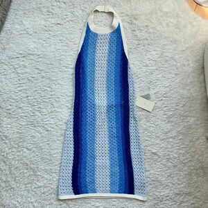 NWT Kith Womens Crochet Knit Anya Mini Dress Kyanite 2024 Blue Halter Small Cute