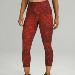 Lululemon Legging Womens 6 Wunder Train Denim Wash Autumn Red Black. No signs of wear, no rips or stains. In like new condition. Smoke free home.