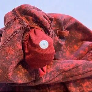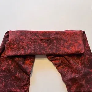 Elevate your activewear game with these Lululemon high rise leggings in a stunning autumn red and black denim wash print. The leggings feature a pull-on closure for a secure fit, and are made with lightweight and breathable Everlux fabric that stretches and dries quickly. Perfect for gym and cross training, yoga, and running, these leggings provide compression in both the waist and leg areas for a flattering and comfortable fit.