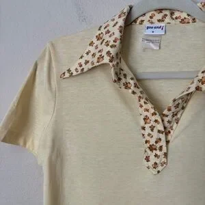 Vintage 70's Retro Ditsy Floral Printed Wide Collar Polo Shirt