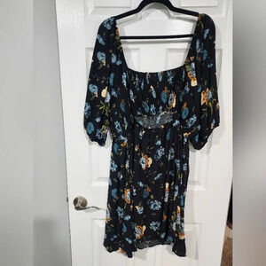 NWOT Maurices Black Floral Pleated Puff Sleeve Mini Dress in Size 3X