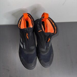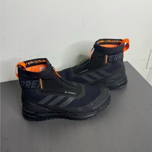 Adidas Terrex Free Hiker Cold.RDY hiking boot in a Core Black and Orange colorway.