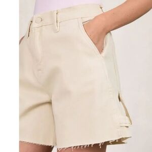 These denim shorts from Good American feature a zip-up fly front, denim shorts, a frayed hem, and a long length.