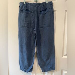 by Anthropologie Audra Linen Blend Cropped Utility Pants in Blue Size 30. Very good preowned condition.