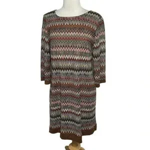 Studio One size 12 boho neutral multicolor chevron print shirt dress