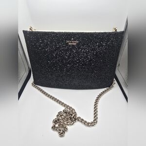 Kate Spade ♠️ Black W/ Silver Hardware Glitter Minaudière Crossbody (EUC)🩶♠️🩶 Excellent condition ! No stains, no rips , no corner wear , no scratches & hardware works perfectly fine ! Comes with Kate Spade ♠️ original chain that is detachable & can be used as a clutch. Very beautiful 😍 Will ship with care ! Same or next day shipping !