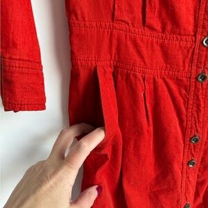 Maeve Anthropologie women corduroy pencil dress size 0 red orange wide wale