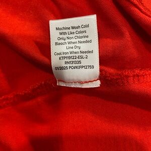 Women’s Evereve short-sleeve blouse in a vibrant bright red, size Large, in like-new condition. This modern, eye-catching top features dramatic ruched ruffle sleeves with pronounced volume for a bold, feminine statement.