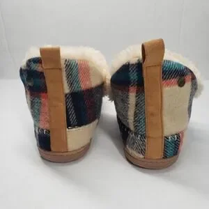 Dearfoams Alpine Moritz Bootie House Slippers Womens 9 Cream Plaid
