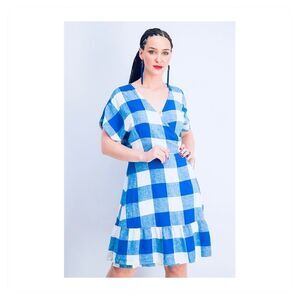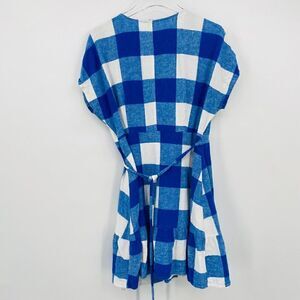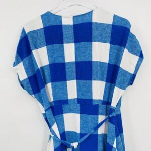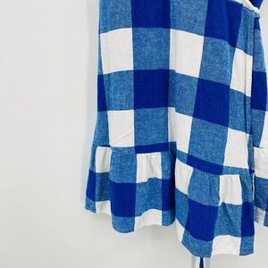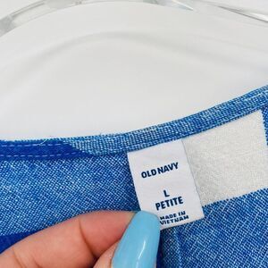 Old Navy Size Large Petite LP Blue & White Plaid Linen Summer Wrap Dress