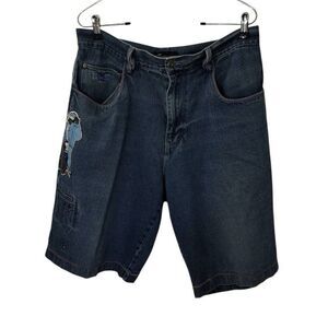 No Boundaries Y2K Blue Jean Long Shorts Hip Hop Swag Size 36 Length is 23" Rise is 11" Amazing graphics and Embroidery on this bad boy!See pics for any blemish.