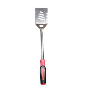 Snap-on multi-purpose BBQ spatula combines heavy-duty construction with the iconic comfort of a classic screwdriver-style handle. This versatile grilling tool features a stainless steel blade equipped with a built-in bottle opener, a serrated edge for cutting, and a tenderizer edge, making it an essential all-in-one accessory for any outdoor cookout. The ergonomic red and black handle ensures a secure grip and maximum control while flipping burgers or steaks on the grill.