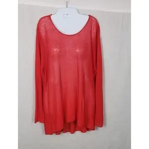 Eileen Fisher Red Organic Linen Blend Sheer Knit M Tunic Top Valentine's Day