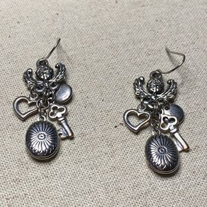 💛 Sterling Silver Plated Cherub Heart & Locket Drop Earrings