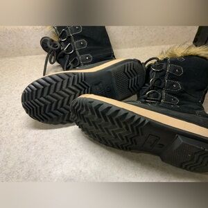 Stylish lace-up boots with faux fur trim. Durable and cozy for winter wear.
