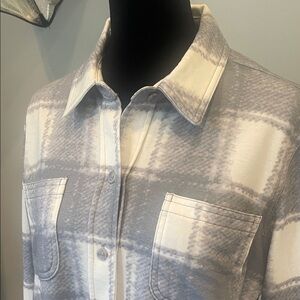 Gray and White Plaid Button-Up Shirt super soft