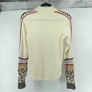 Stylish long sleeve top by Free People. Cream body with intricate brown sleeve details. Perfect for casual wear.