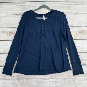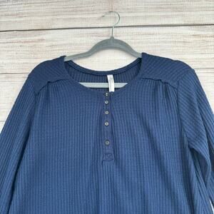 Item: Anthropologie Henley Waffle Knit Blouse Womens Medium Navy Blue