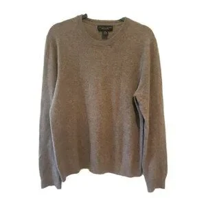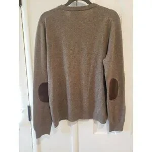 Bloomingdales Cashmere Sweater Pullover Mens Gray Suede Elbow Patches M Academia