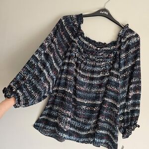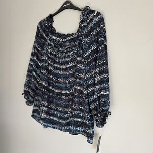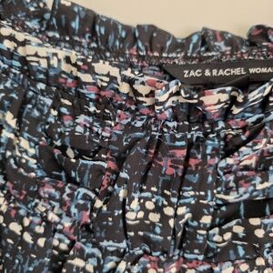 Zac & Rachel Women's Multi-Colored Patterned Ruffle Blouse Sz 2X