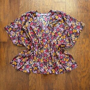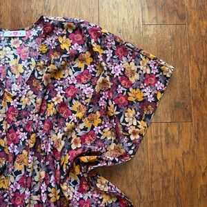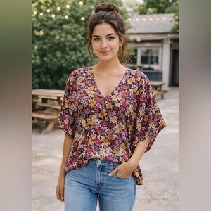 INFO: Flowy and feminine, this oversized wing sleeve top from Buddy Love showcases vibrant florals in a relaxed silhouette. Perfect for layering through seasons, it brings effortless charm and comfort to any wardrobe.