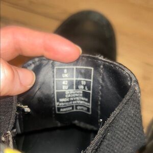 Classic black ankle boots with signature yellow stitching. Durable leather construction. Ideal for versatile styling.