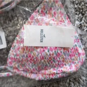 Hollister Bikini Top Floral Smocked Fabric Tie Strap Bikini Swim NWT