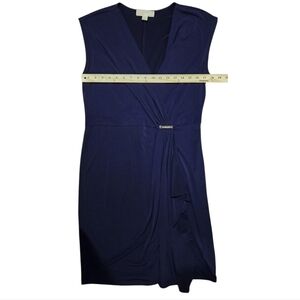 Michael Kors Purple Draped Sheath Midi Dress Silver Bar Minimalist Evening Sz L