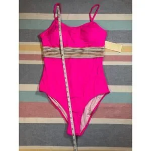 NWT Hot Pink One Piece Swimsuit with Rainbow Smocked Band – Size M