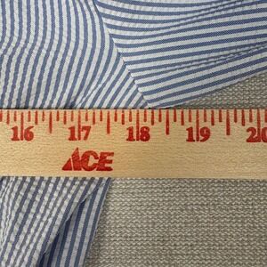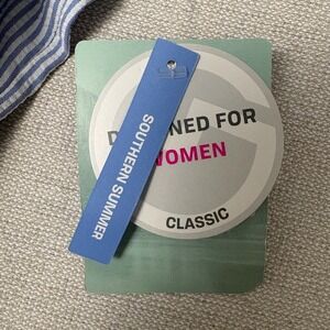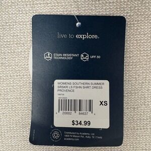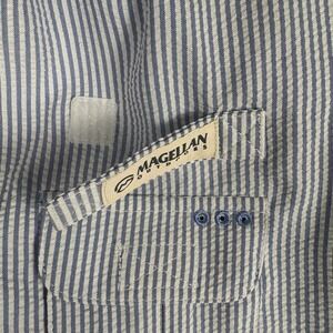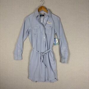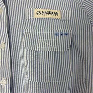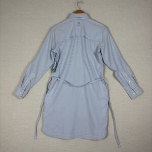 Item & Description: Fishing shirt dress by Magellan. UPF 30, stain resistant, pockets, roll tab sleeves. Blue and white seersucker. New with tags, no flaws.