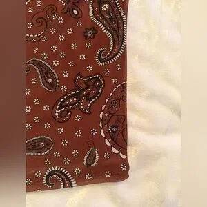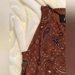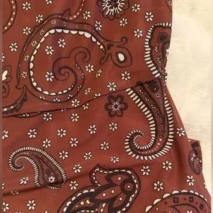 This elegant brown midi dress features a classic paisley design. Perfect for any occasion.