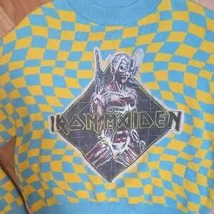 Vibrant blue and yellow checkered design. Features bold graphic on front. Perfect for casual wear.