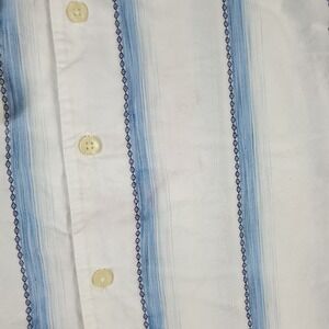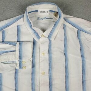 Tommy Bahama Shirt Mens Size XL White Blue Striped Button Up Long Sleeve STAINED