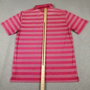 Nike Polo Shirt Mens Size Large Pink Striped Swoosh Golf Casual Short Sleeve *