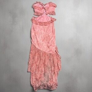 Majorelle Sonia Gown Pink Lace Strapless Cutout Ruffle Maxi Dress